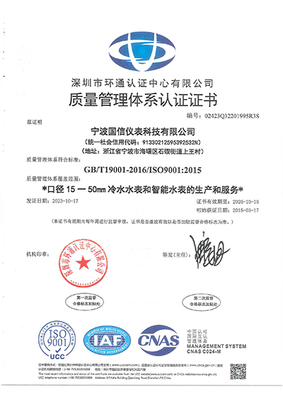 ISO9001質量管理體(ti)系認證證書(shū)