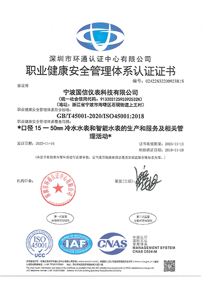 ISO45001職業健康安(ān)全管理體系(xì)認證證書