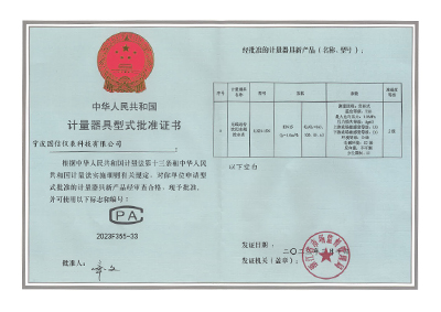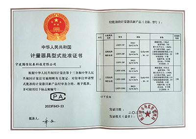 計量器(qi)具型式批準(zhǔn)證書